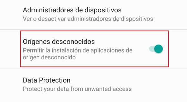 * Nota: Es importante que active de antemano la posibilidad de instalar aplicaciones de terceros en tu smartphone, porque de lo contrario el sistema operativo lo bloqueará en el proceso de instalación y no podrás avanzar. Para ello, vaya a la sección » Ajustes » de su teléfono, y dentro de él pulse » Seguridad «. Una vez allí, busque la opción «Aplicaciones de origen desconocido» y activarlo. Una vez hecho esto, puedes ejecutar el proceso que hemos explicado antes, punto por punto, sin problemas.