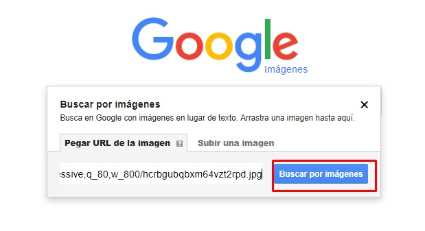 - Ahora, pega la dirección de esta imagen y pulsa el botón » Buscar imágenes «. Con esto, el servicio te proporcionará todas las páginas web que contengan esta foto que has seleccionado.