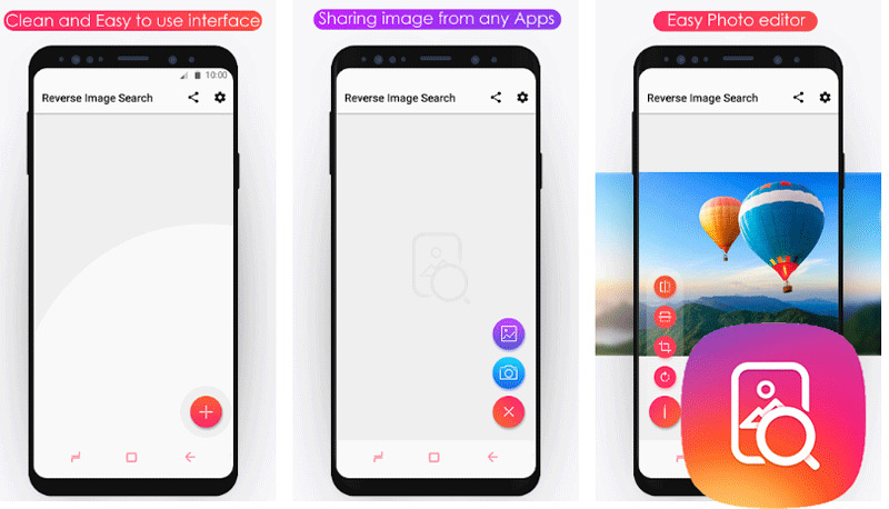 Disponible en Google Play Store Esta aplicación le permite buscar imágenes utilizando los principales motores de búsqueda de la web y otros motores de búsqueda, en lugar de palabras clave. Gracias a su óptimo funcionamiento, es capaz de comprobar rápidamente el origen de las fotos e imágenes .