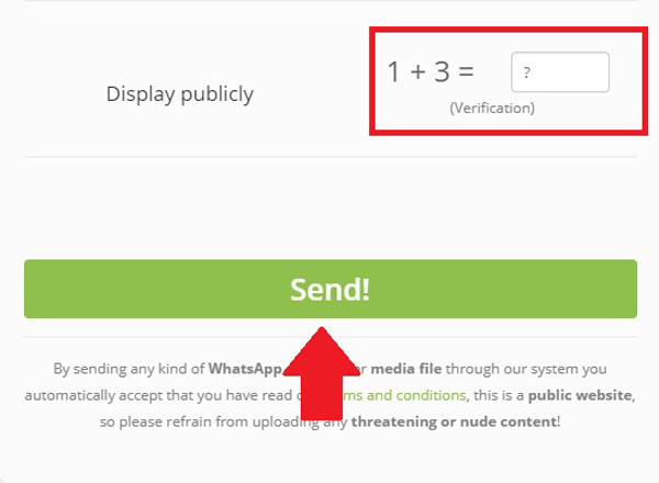 • Antes de enviar el mensaje, deberá rellene la casilla de verificación, simplemente ejecuta la operación matemática que aparece en la pantalla. Por último, hacemos clic en «Enviar».