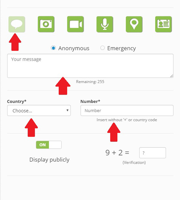 • Como puede ver, el mensaje se enviará de forma anónima o de emergencia. Por lo tanto, su identidad estará completamente protegida.