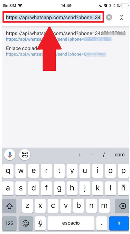 • Para empezar, deberá copiar el siguiente enlace en el navegador de su smartphone: https://api.whatsapp.com/send?phone=XXXXXXXXXXX . En ese caso, X é el número de teléfono en el que que quieres grabar sin tener que añadirlo a tu lista teléfono .