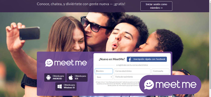 Se refiere a otra de las redes sociales más utilizadas para conocer gente nueva y ligar , tanto en tu ordenador desde la web oficial, como en tu móvil, ya que es compatible con Android e iOS. Actualmente, el MeetMe cuenta con un gran número de usuarios que superan los 100 millones de personas registradas en su base de datos y, gracias a ello, garantiza una completa variedad al tener un notable auge mundial. Además, se sabe que es una plataforma muy similar a Badoo en términos de usabilidad y algoritmo.