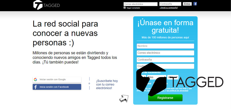 Es una plataforma social donde puedes divertirte y encontrar nuevos amigos o conseguir otros usuarios con los que tengas aficiones en común y puedas compartir tus pasiones , pensamientos o gustos . Desde entonces, no se basa realmente en una página web para encontrar pareja y ligar. Así que, es importante señalar que Tagged es una página en la que se puede registrar gratuitamente y, si lo desea, puede hacerlo a través de su cuenta de Facebook. Hoy en día tiene más de 300 millones de usuarios de todo el mundo.